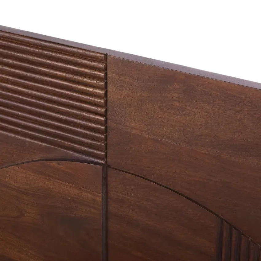 La structure en manguier et acacia offre une robustesse exceptionnelle et une durabilité à toute épreuve. Les dimensions généreuses de 160 × 200 cm garantissent un repos réparateur, tandis que le design épuré avec sa tête de lit sculptée apporte une élégance intemporelle à votre intérieur.
