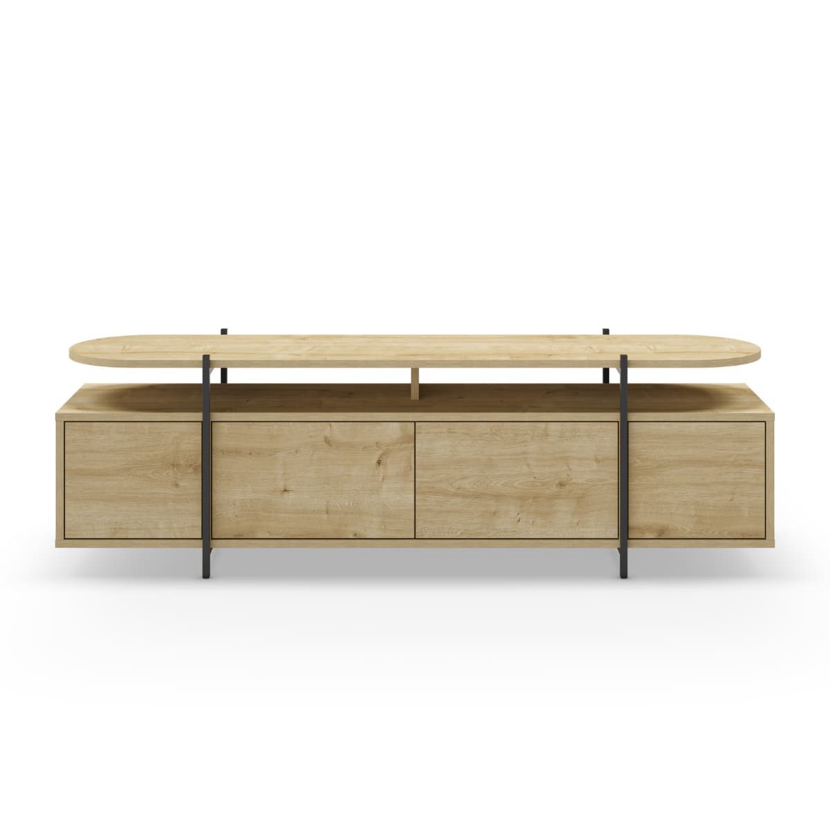 Meuble TV Japandi 4 portes pieds métalliques effet chêne L160 cm – Hinoa