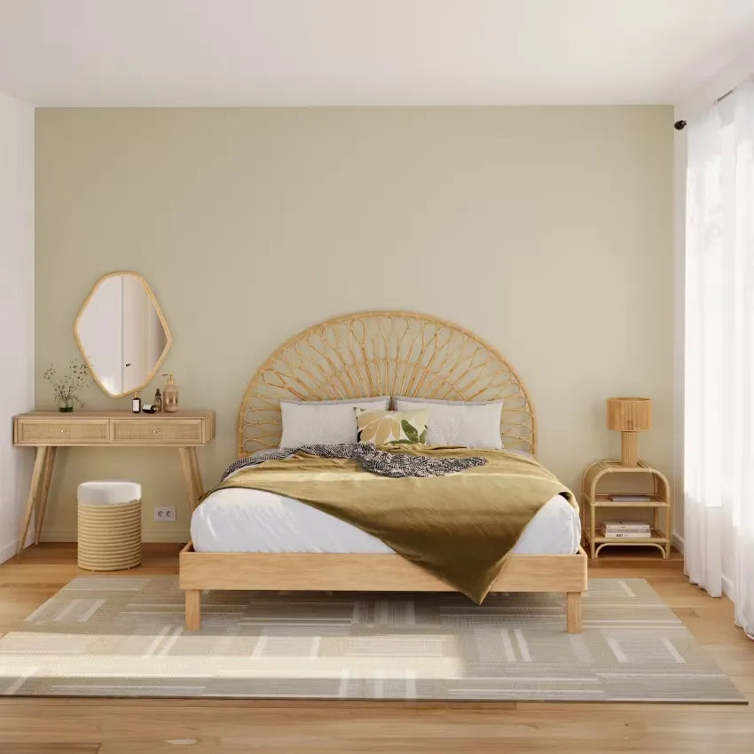 Façonné en rotin naturel, ce miroir de 76,5×53 cm offre une texture organique qui illumine instantanément votre intérieur. Sa bordure aux lignes fluides crée un contraste saisissant entre la réflexion parfaite du miroir et la chaleur du matériau naturel, caractéristique du style Japandi authentique.