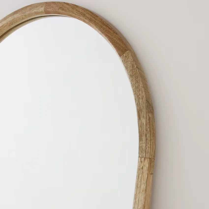 Élégant miroir Japandi en bois de manguier, il agrandit l'espace avec sa forme ovale 60x170 cm et sa finition polie.
