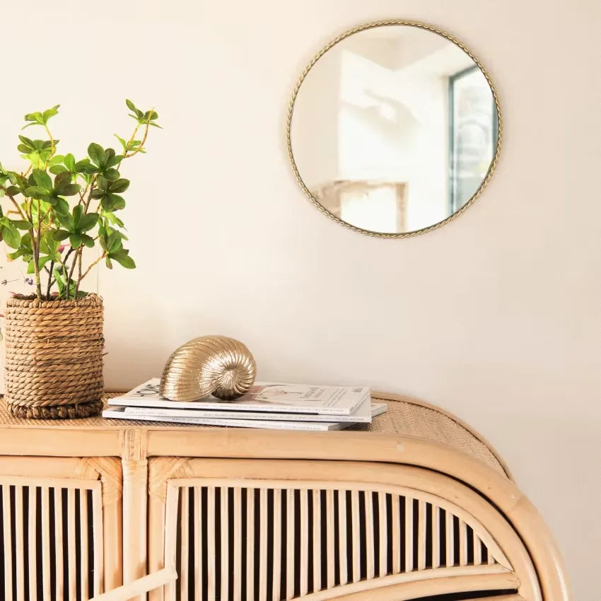 Miroir Japandi Rond Métal Torsadé Doré Ø 28 – Albania