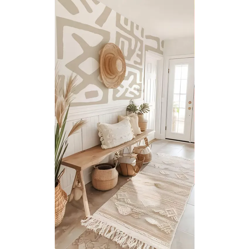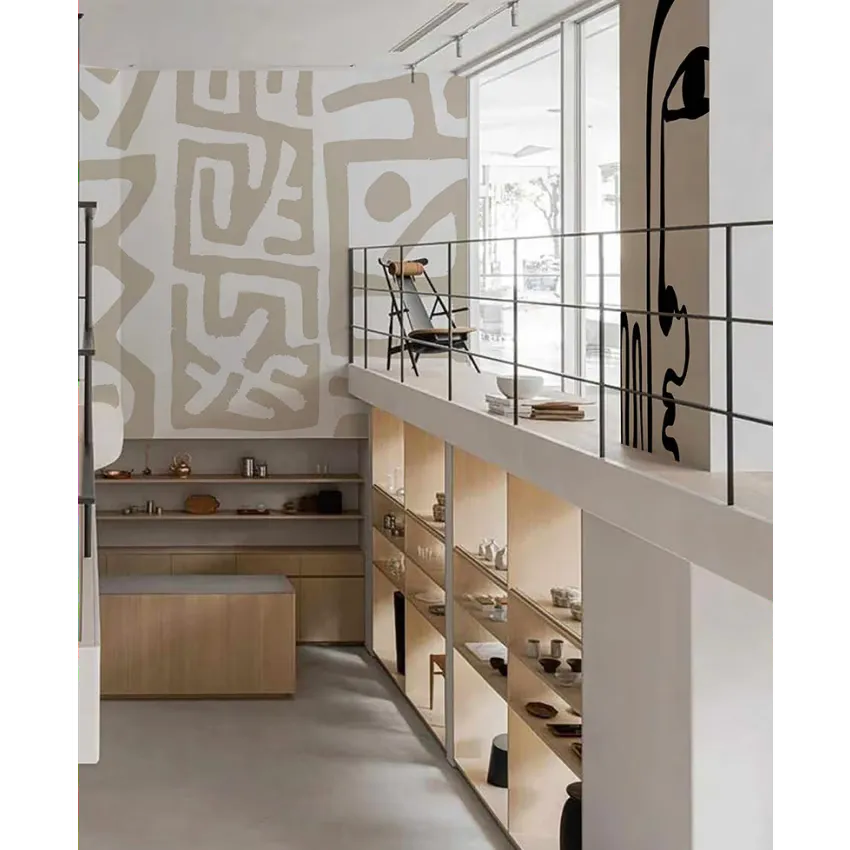 Papier peint Japandi aux motifs abstraits et teintes naturelles, idéal pour un intérieur moderne et apaisant. Finition mate pour une élégance contemporaine.