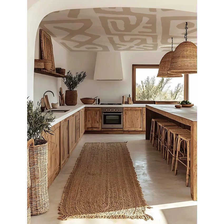 Chaque détail du motif évoque un artisanat raffiné et une inspiration artistique unique. Les formes irrégulières beiges se détachent avec élégance sur le fond clair, créant un contraste saisissant qui captive le regard sans dominer l'espace. Un choix intemporel pour les amateurs d'intérieurs chaleureux et sophistiqués.