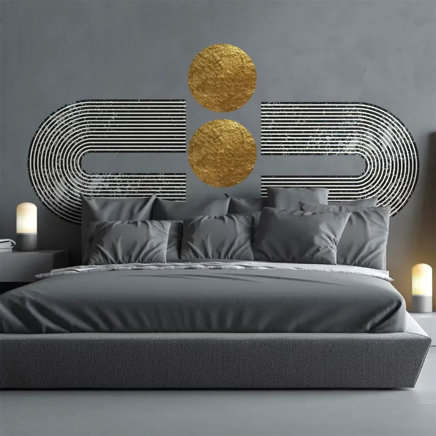 Ce revêtement mural artistique combine des arcs semi-circulaires aux lignes fines et des cercles métallisés qui captent magnifiquement la lumière. Sa texture douce au toucher et sa finition satinée ajoutent une dimension tactile à votre décoration. Lessivable et résistant au grattage, il allie esthétique et praticité quotidienne.