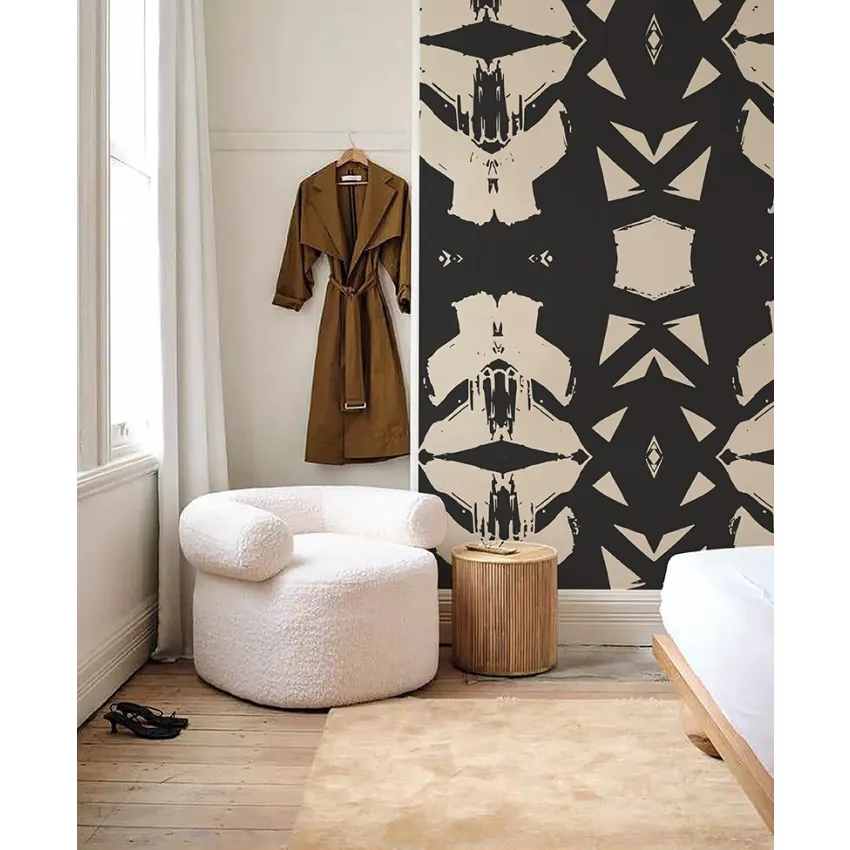 Le contraste noir et blanc cassé de ce revêtement mural développe une ambiance contemporaine tout en apportant chaleur et caractère. Ses formes abstraites répétées évoquent des symboles tribaux qui transforment instantanément l'atmosphère de votre intérieur, créant un point focal artistique et sophistiqué.