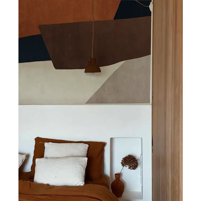 Le papier peint Japandi Texture 300x700 cm de Les Moderna marie harmonieusement les influences japonaises et nordiques. Ses formes géométriques asymétriques aux tons terreux créent une ambiance apaisante. Découvrez notre collection complète de papiers peints japandi pour transformer intégralement votre intérieur.