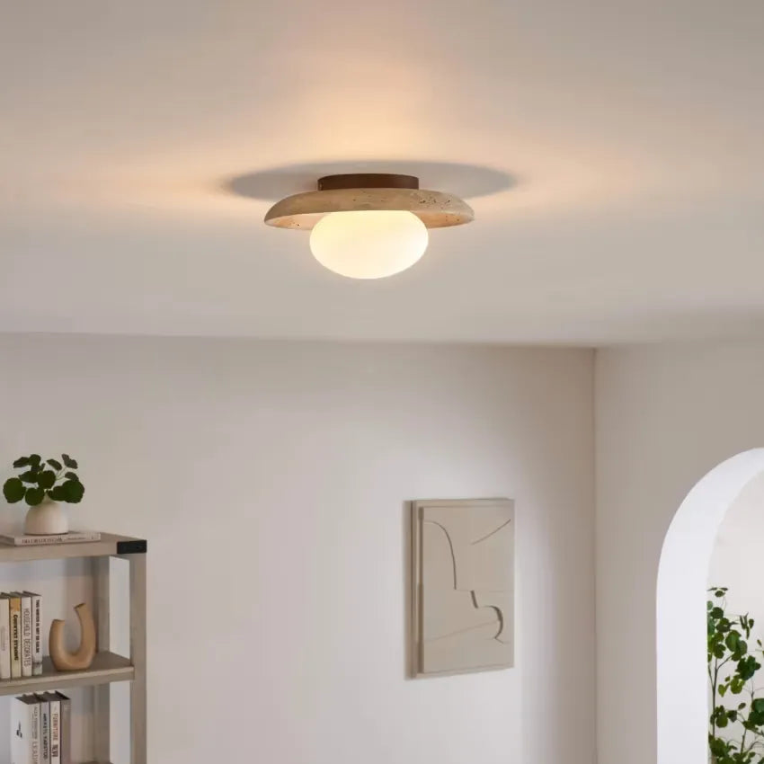Optez pour le plafonnier Japandi Jio en verre et bois, fusion parfaite de design minimaliste et chaleur naturelle.