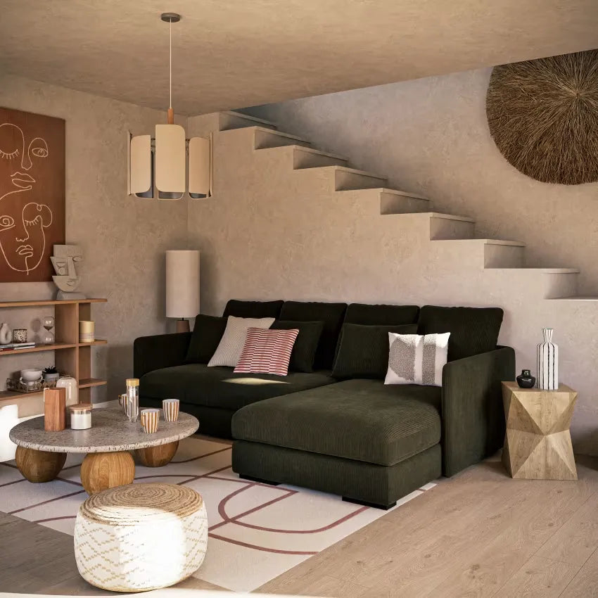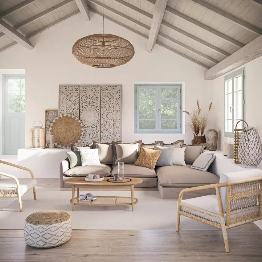 Évadez-vous dans votre propre intérieur avec le pouf Japandi Maki, pièce signature qui allie artisanat traditionnel et design contemporain. Complétez votre aménagement avec d'autres assises confortables de style japandi pour créer un ensemble harmonieux où détente rime avec élégance.