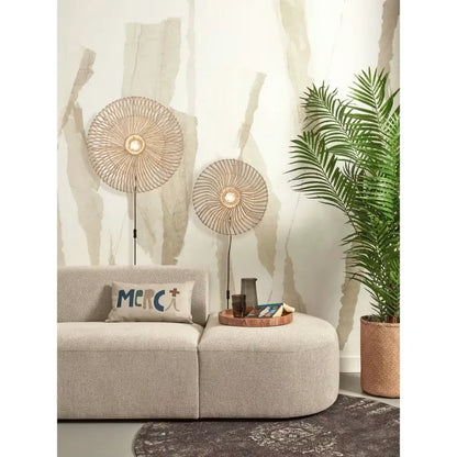 Chaque luminaire en fibres naturelles est conçu pour durer et apporter une chaleur visuelle incomparable. L'entrelacement délicat du rotin blanc permet une diffusion lumineuse tamisée, idéale pour les espaces de détente comme le salon ou la chambre. Le design aérien de cette suspension de 55 cm de diamètre s'harmonise naturellement avec les intérieurs épurés, tout en apportant texture et caractère.