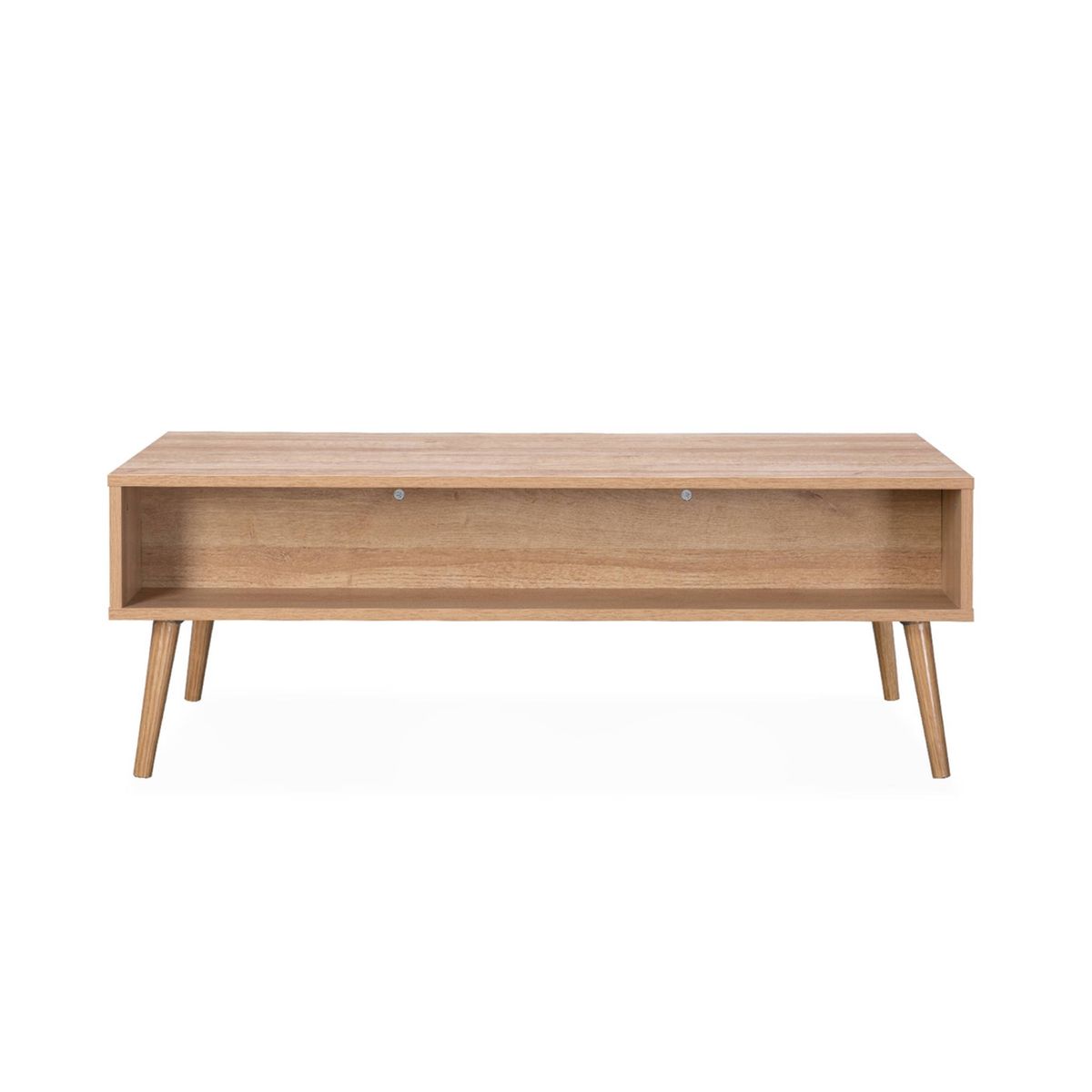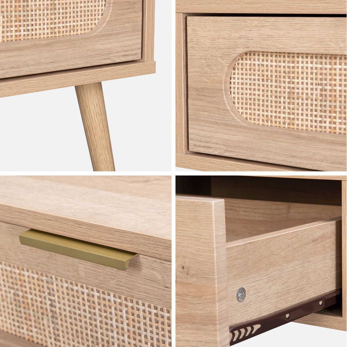Dotée d'un tiroir spacieux et d'une étagère ouverte, cette table basse offre un espace de rangement pratique pour vos magazines, télécommandes et autres objets du quotidien. Le tiroir en rotin permet de dissimuler élégamment les objets moins esthétiques, contribuant à un salon ordonné et accueillant. Pour découvrir plus de modèles, explorez notre collection de tables basses japandi.