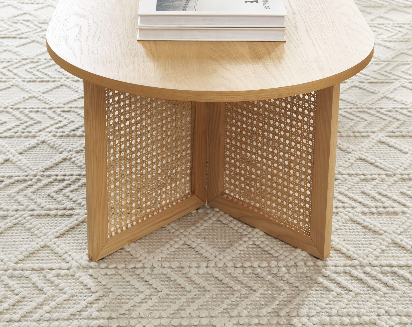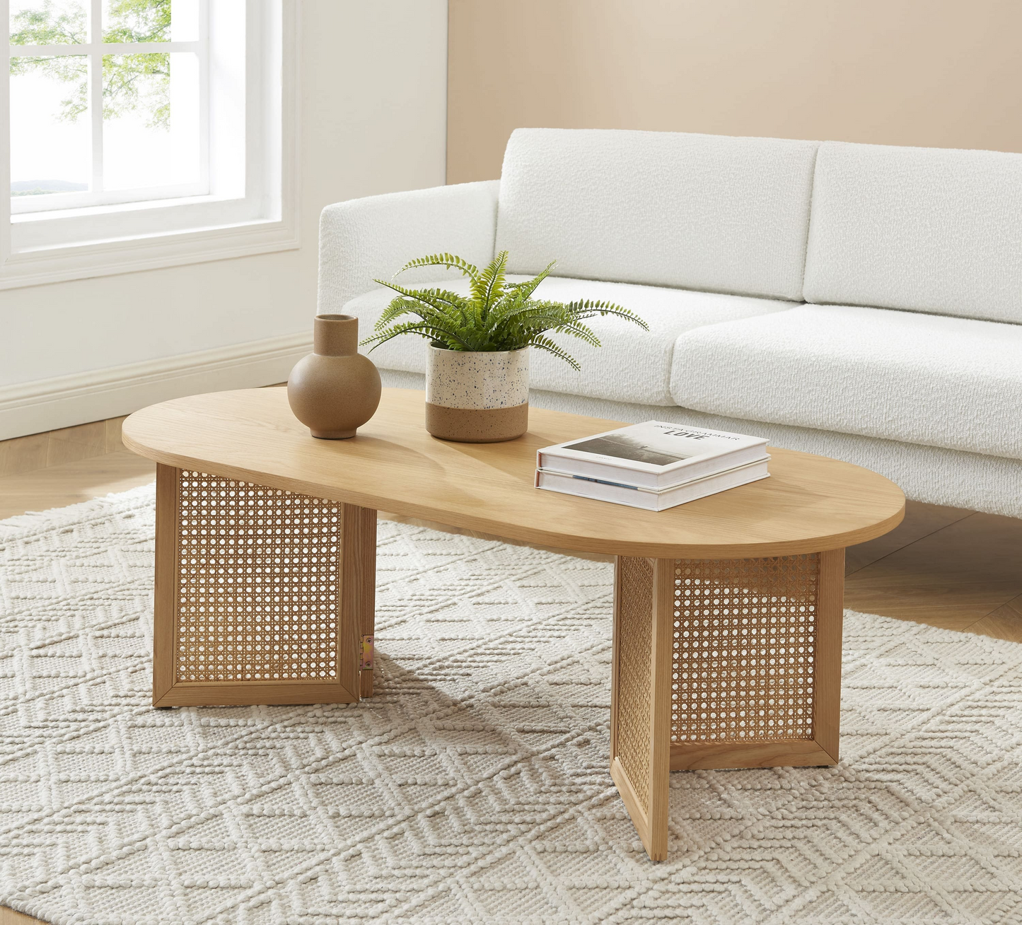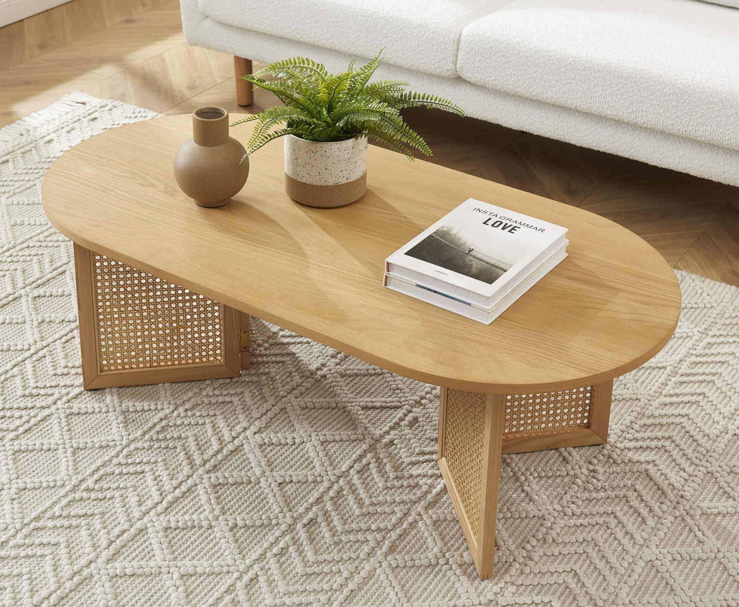 Table Basse Japandi placage chêne et cannage rotin 120 cm – Leon