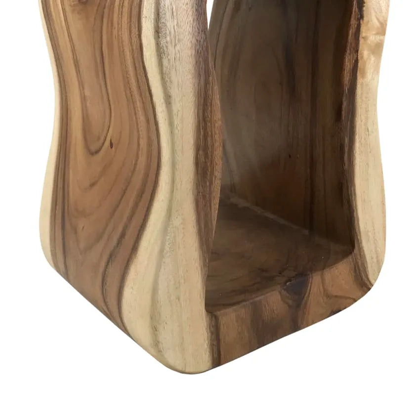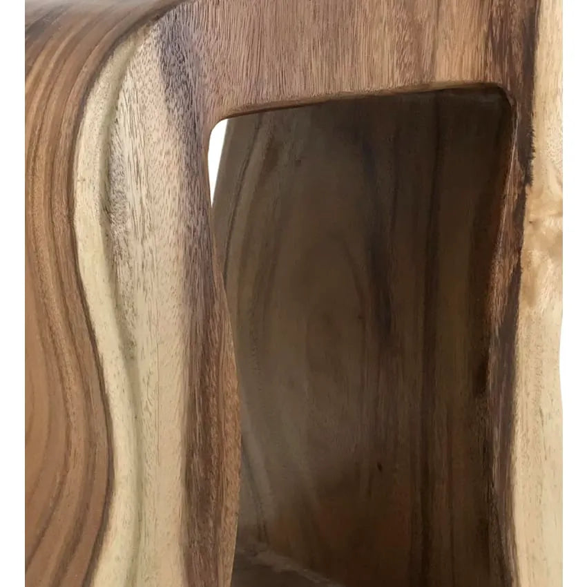 Chaque tabouret Ruko témoigne d'un savoir-faire exceptionnel. La teinte marron chaleureuse varie naturellement, créant un effet marbré unique qui s'harmonise avec tous les intérieurs. Les fibres visibles du bois de suar racontent l'histoire d'une matière vivante, travaillée avec respect.