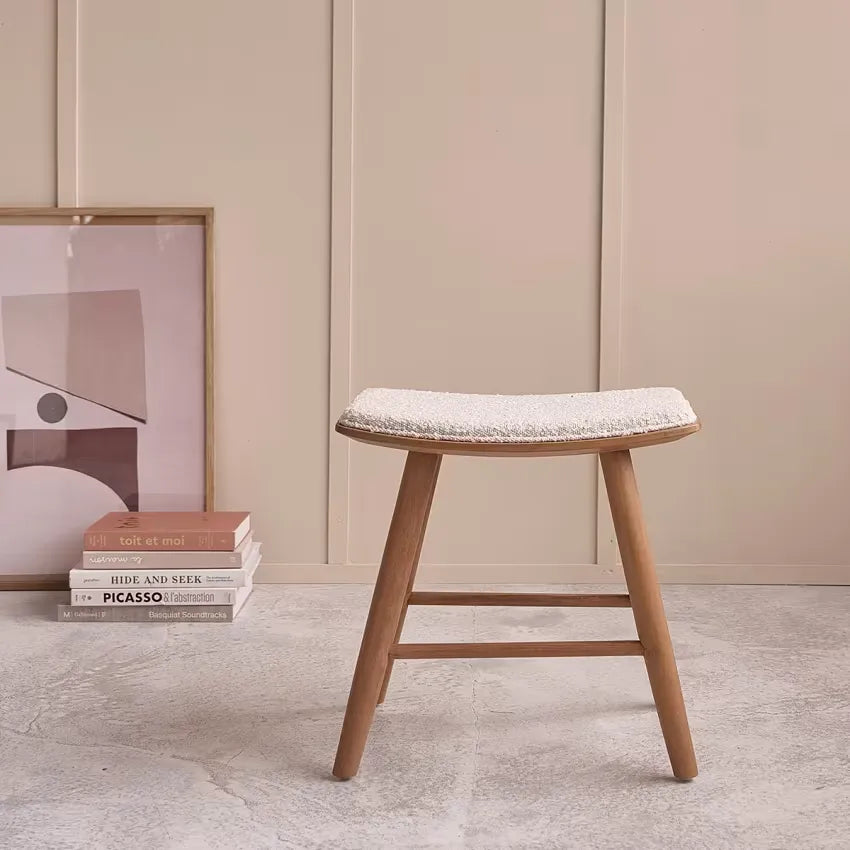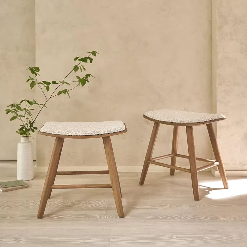 Découvrez l'élégance du style Japandi avec ces tabourets en teck massif, alliant design naturel et confort bouclette.