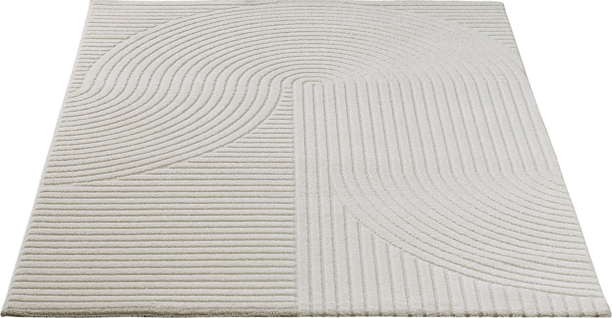 La texture en relief du tapis Japandi Bohème crée un jeu fascinant d'ombres et de lumières qui dynamise votre décoration. Ses lignes courbes parallèles sculptées offrent une dimension tactile exceptionnelle, invitant au toucher et au confort absolu. Le design épuré mais expressif s'harmonise parfaitement avec les intérieurs minimalistes.