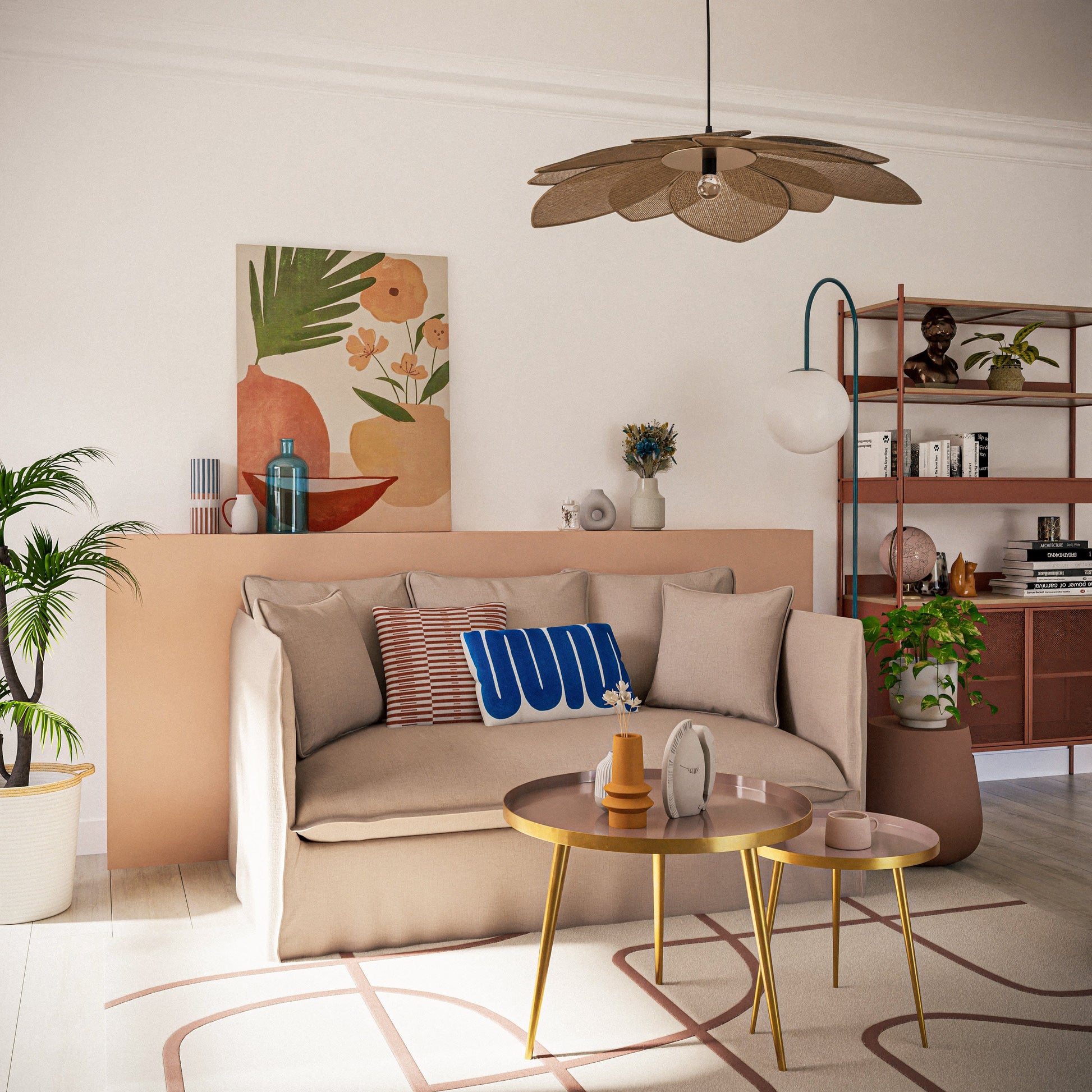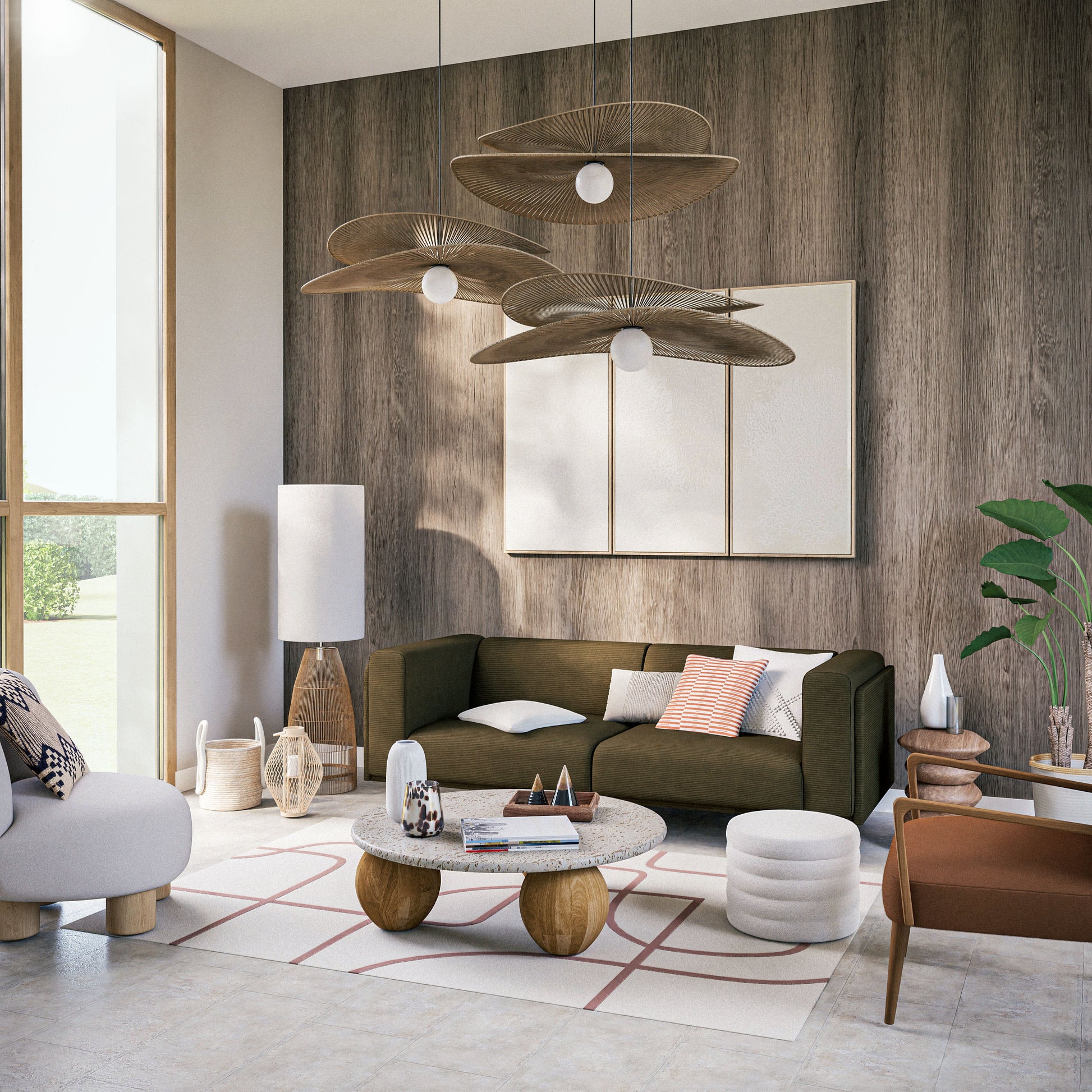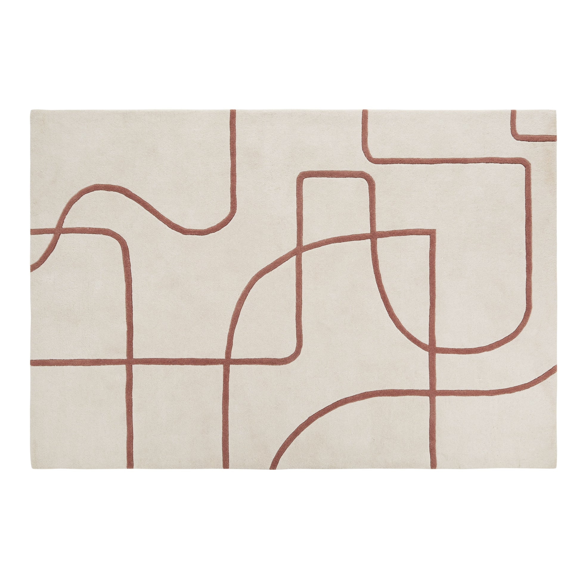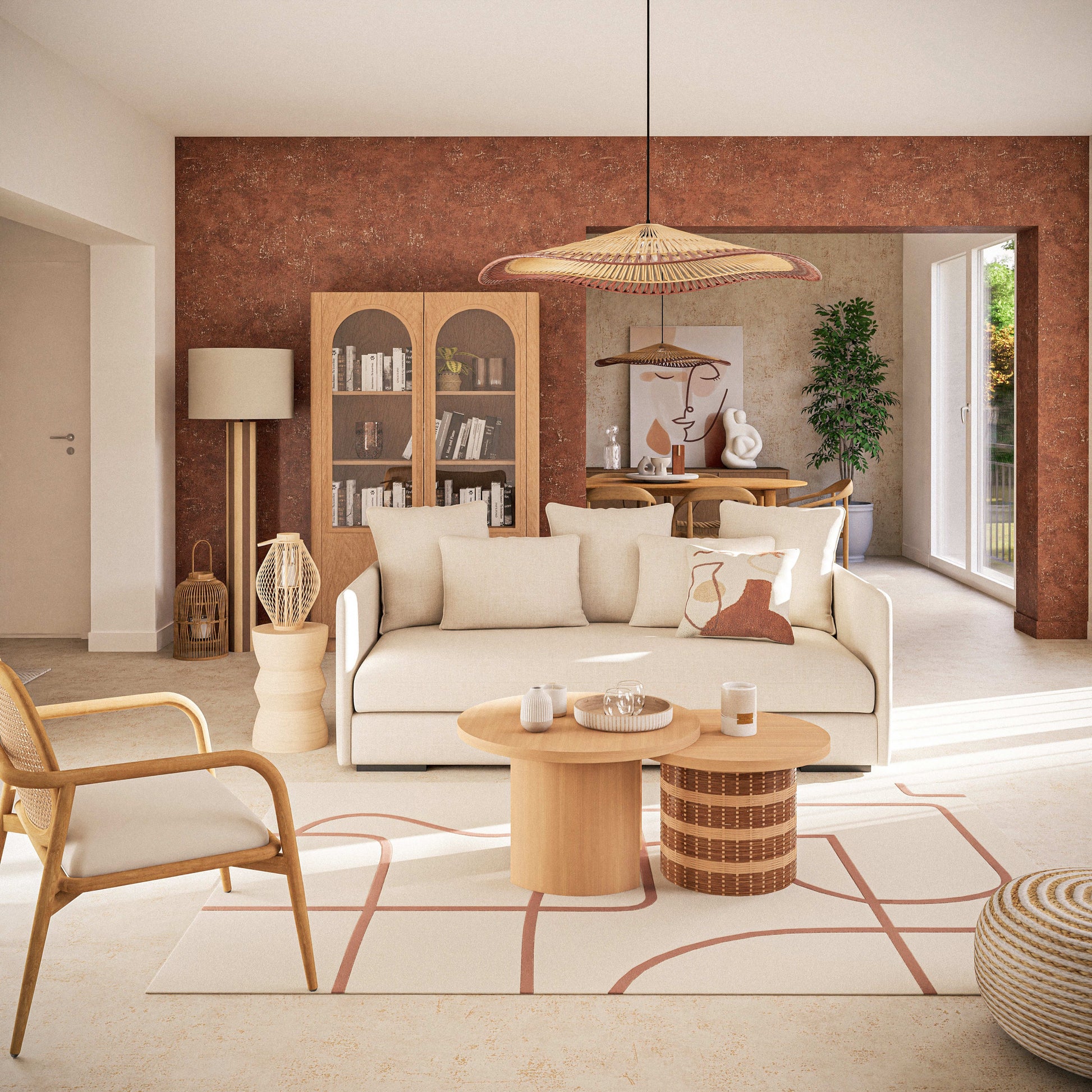 Ce tapis Fereol sculptural crée un ancrage visuel parfait dans votre espace. Les motifs terre cuite se détachent avec élégance sur la base laineuse, établissant un dialogue raffiné avec vos meubles en bois clair et accessoires en céramique, piliers du style nippo-scandinave.