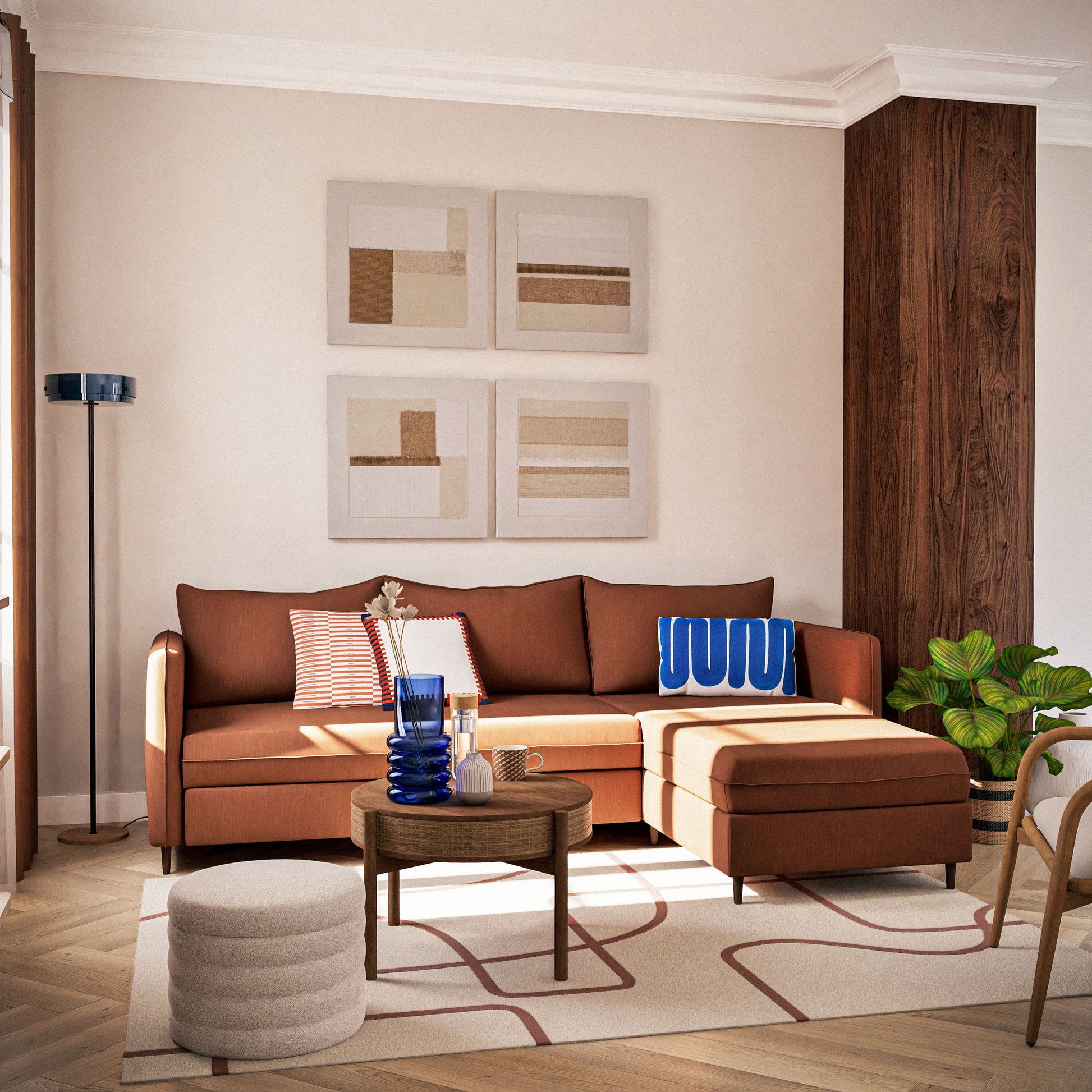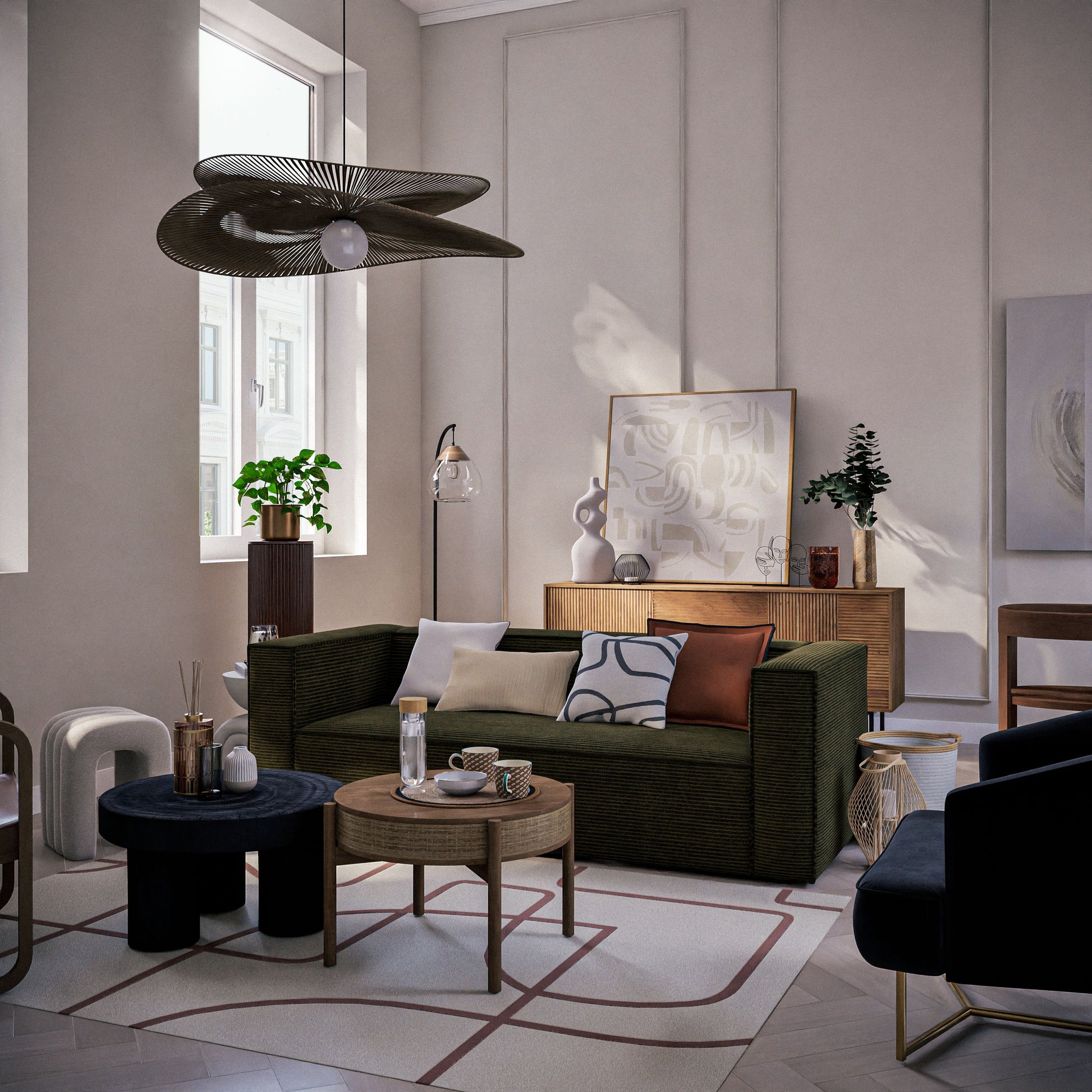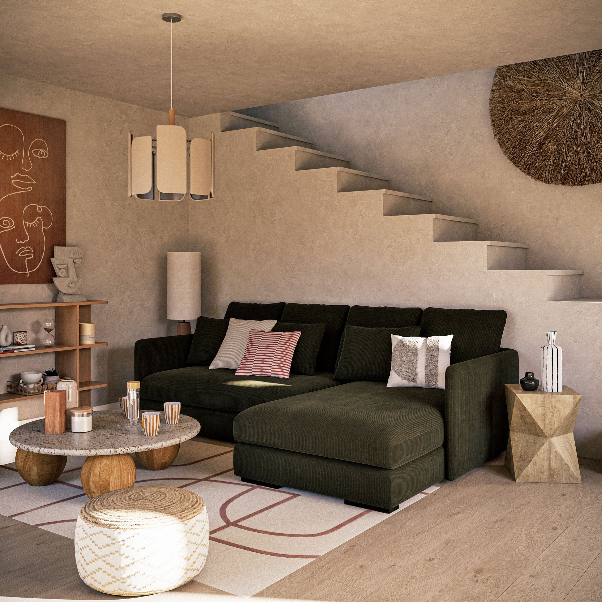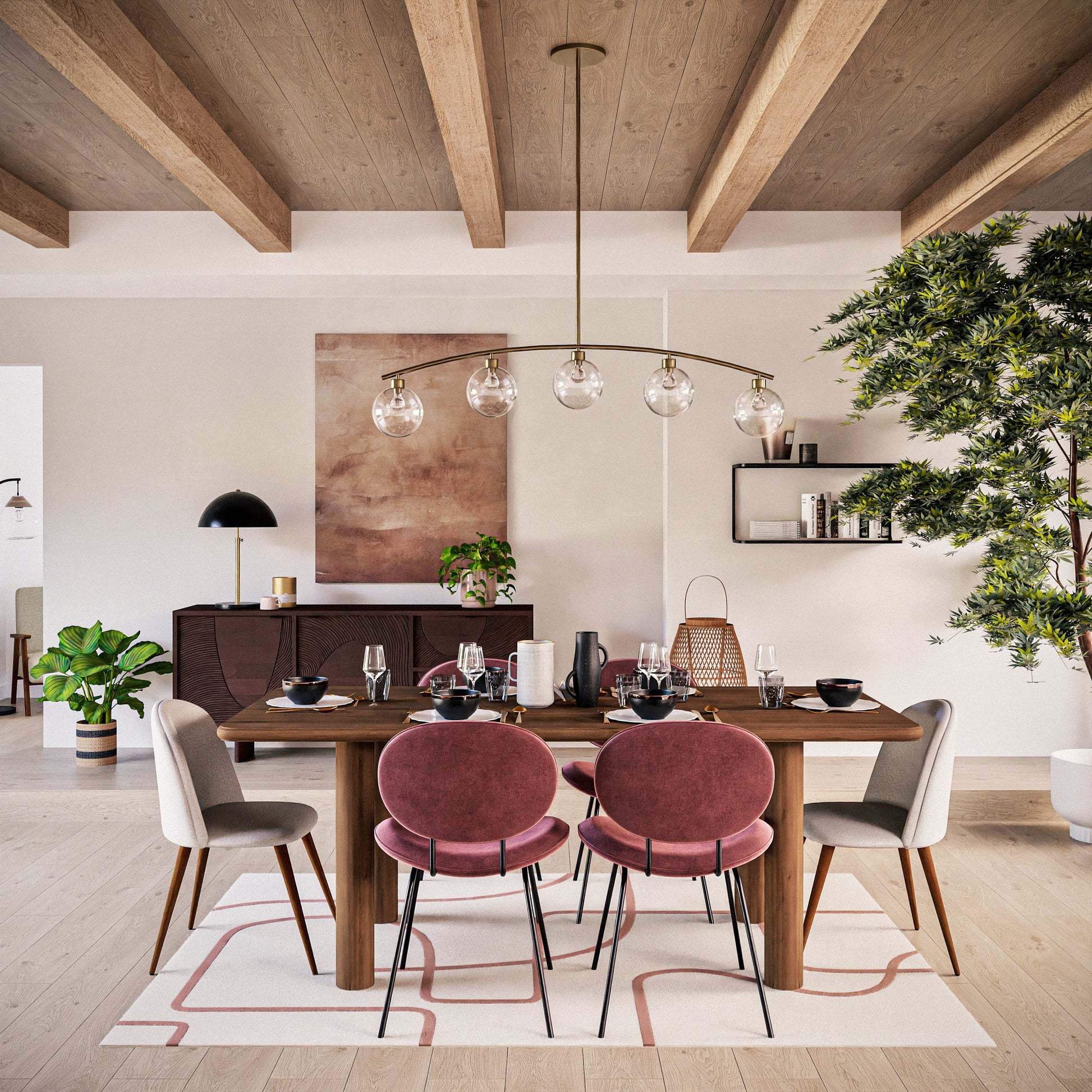 Ce tapis Fereol sculptural crée un ancrage visuel parfait dans votre espace. Les motifs terre cuite se détachent avec élégance sur la base laineuse, établissant un dialogue raffiné avec vos meubles en bois clair et accessoires en céramique, piliers du style nippo-scandinave.