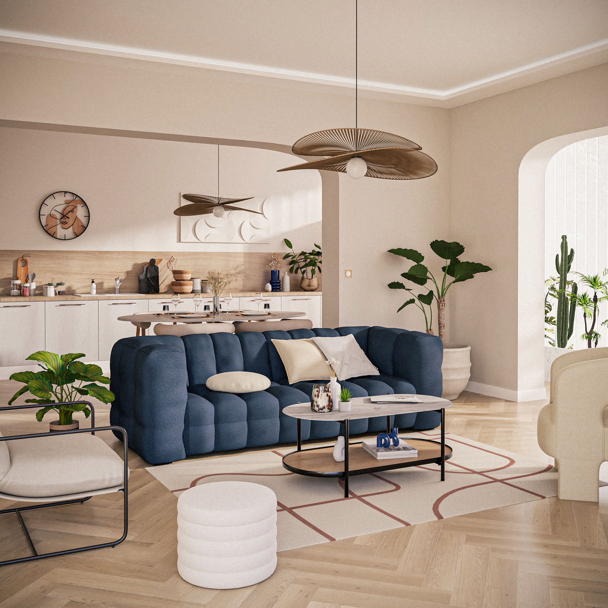 Les lignes sinueuses du motif évoquent l'équilibre parfait entre minimalisme japonais et chaleur scandinave, essence même du style Japandi. Chaque fibre écrue capture subtilement la lumière, ajoutant profondeur et dimension à votre espace de vie tout en conservant cette sobriété élégante si caractéristique des intérieurs contemporains sophistiqués.